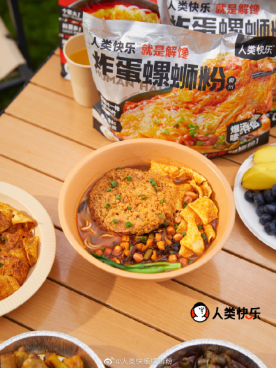 比如「人类快乐」有一款大爆品叫炸蛋螺蛳粉。顾名思义,那里面有炸蛋。
