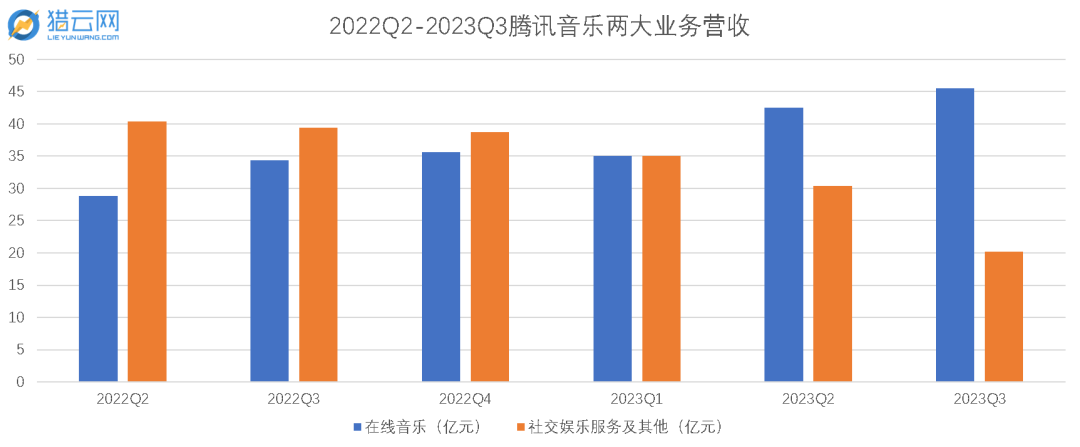 彼时,腾讯音乐董事长彭迦信便透露,2023年预计单季度的在线音乐服务收入将在年内超过同季度的社交娱乐服务收入。