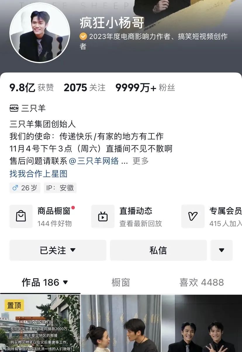 《1亿元买楼,3000万办演唱会,请来众明星的小杨哥到底有多能赚?》北京商报