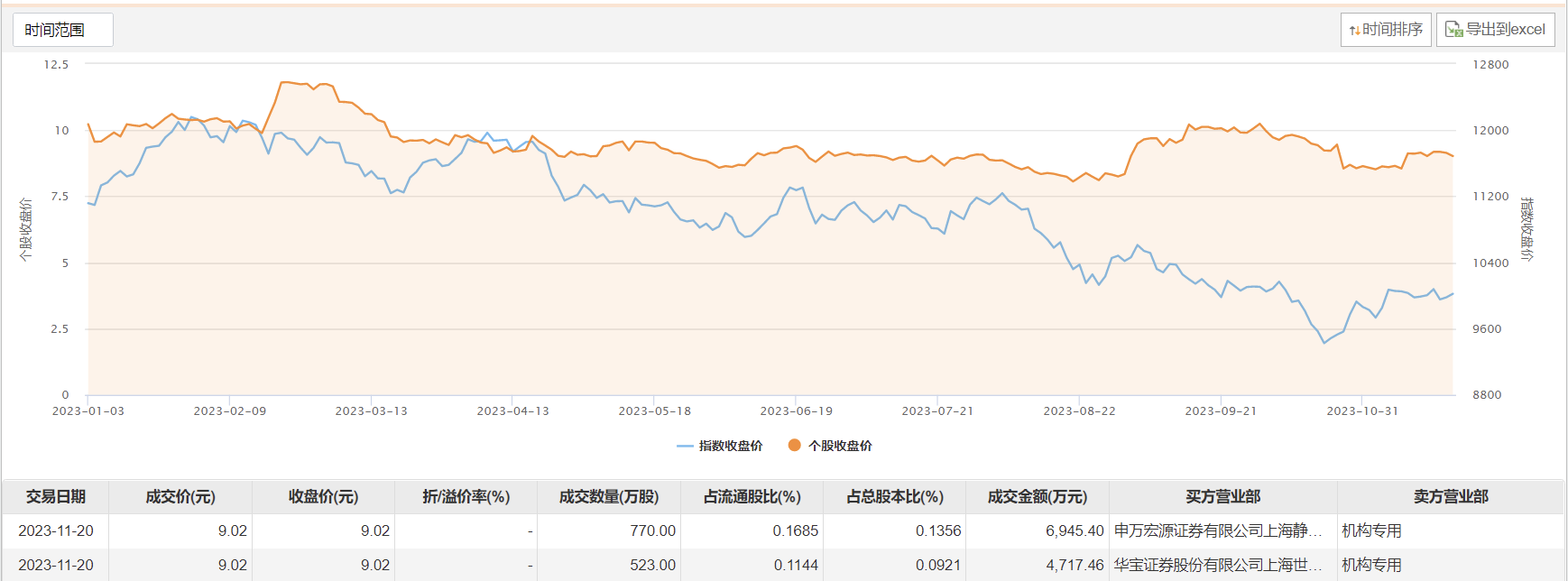 11月20日,山西焦煤今日大宗交易成交1293万股,成交额1.17亿元,占当日总成交额的16.16%,成交价9.02元,较市场收盘价持平。