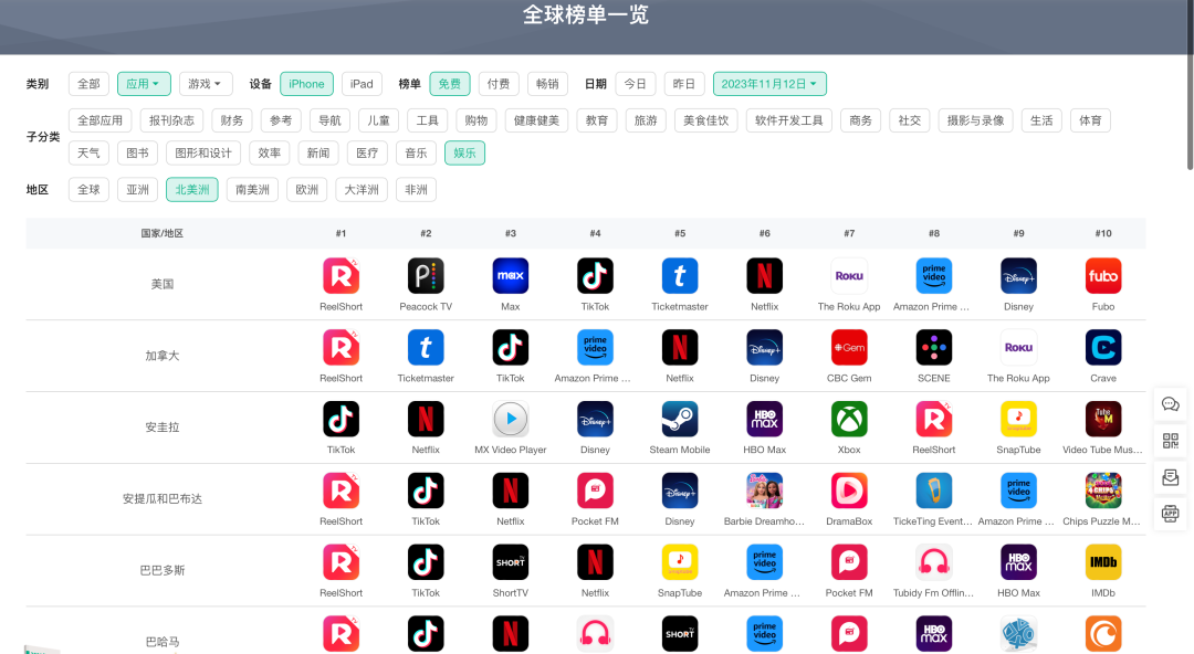 TikTok下载量的海外霸主地位不保,数据显示,中文在线的海外短剧App ReelShort已经在美国、加拿大等多个国家下载量超过Tiktok,成为娱乐榜下载量第一。