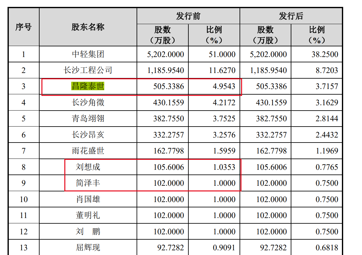 2022年3月,在中轻长泰引入外部投资者的过程中,昌隆泰世收购了4.9543%股权,正式成为中轻长泰的第三大股东。