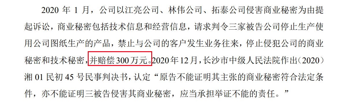 这三家公司均为中轻长泰的供应商,2020年1月,中轻长泰以侵害商业秘密为由起诉上述三家供应商,并要求赔偿300万元。