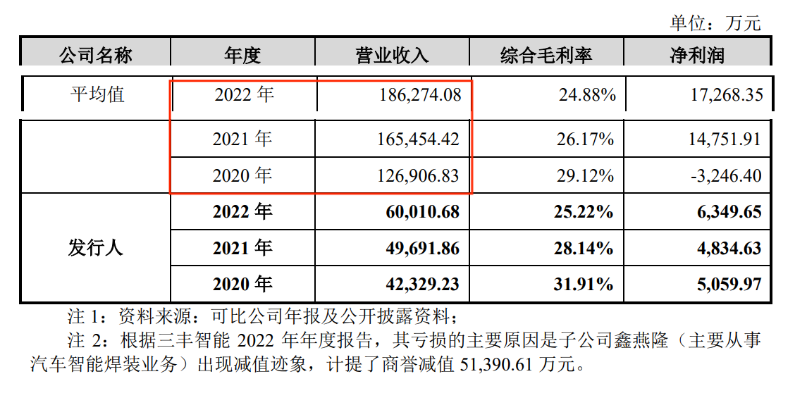 上述同期,同行可比公司营收平均值为12.69亿元、16.55亿元、18.63亿元。