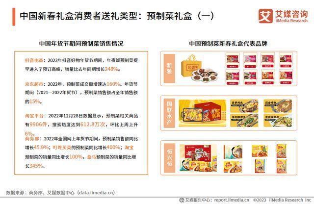 预制菜当然不甘心只出现在打工人的餐桌上,逐渐的,礼品市场、旅游市场都成了预制菜的目标场景。2022年,同程旅行与南国食品跨界合作,推出夏日出游礼盒,线上限量销售10万盒;《2023年中国新春礼盒消费者行为洞察报告》中提到,预制菜(23.4%)成为中国消费者新春送礼的新选择,首次登上新春礼盒前十选择类型榜单。