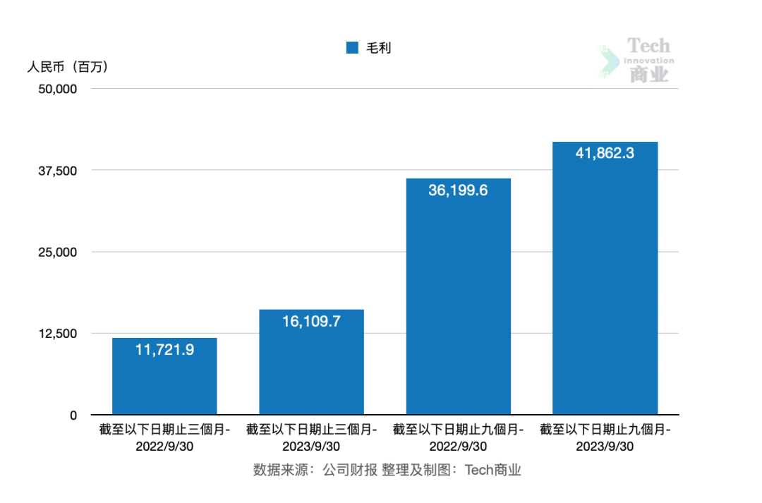 最新季度及前三季度毛利增幅分别高于同期收入增幅。