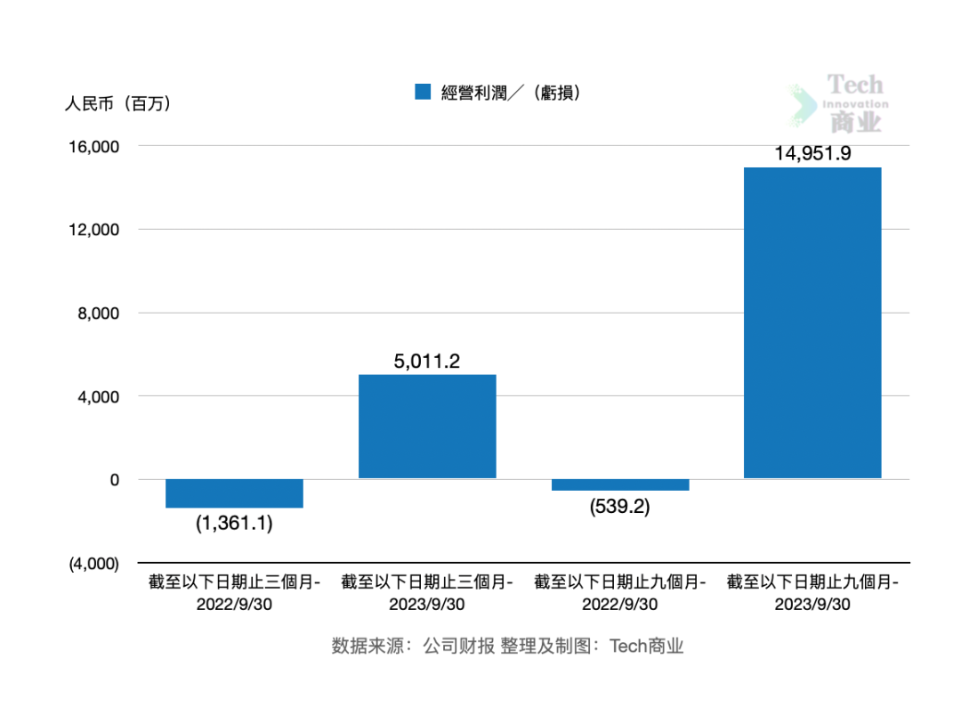 根据业绩报告,本季度小米公司经营利润为50.1亿元,上一财年Q3为经营亏损13.6亿元,本季度该项由亏损转向利润。前九个月小米公司经营利润为149.5亿元,上一财年同期为亏损5.4亿元,本期经营利润亏损转利润。