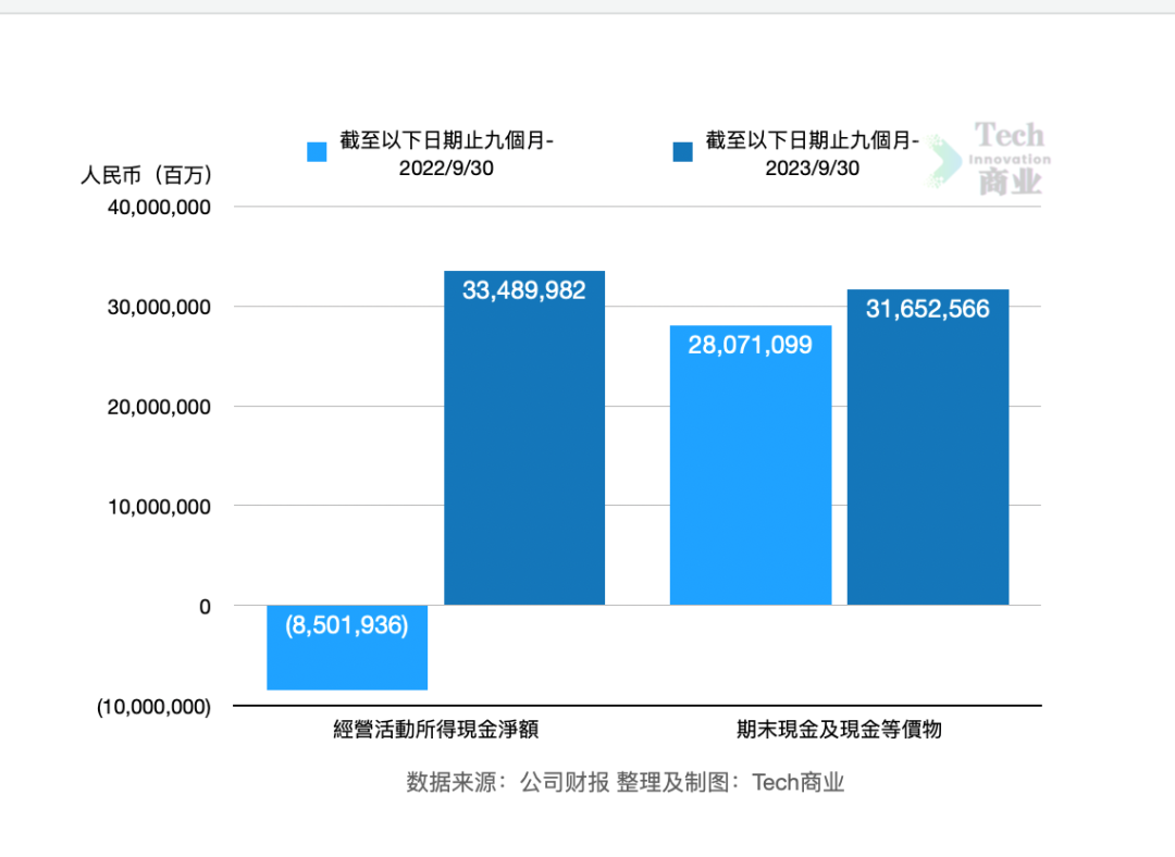 截至本季度的九个月,小米公司经营活动现金净流入额为335亿元,上一财年同期为净流出85亿元,本季度该项现金由净流出转向净流入。期末该公司拥有现金及现金等价物额为316.5亿元,相较上一财年同期的280.7亿元,该项现金资产额增幅为12.8%。