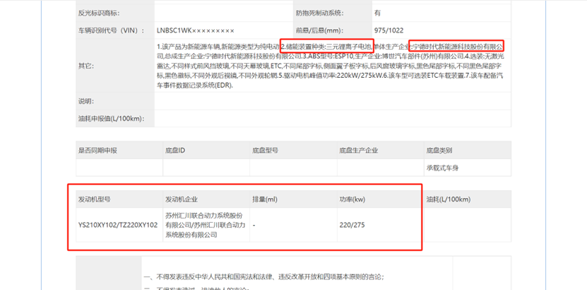 双电机版本配备的是宁德时代三元锂电池,这个可能是麒麟电池,毕竟来年量产的车,定位还这么高端,不用麒麟电池确实有点说不过去了。
