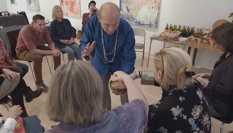 我们拍摄到陈建儿所做的一些调整空间当中“气”和“能量”的仪式,也多有念诵密宗咒语的环节。