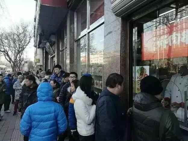 ▲ 28日清早,在北京稻香村购买炸串儿的顾客排起长队。