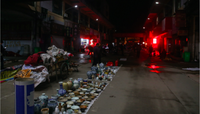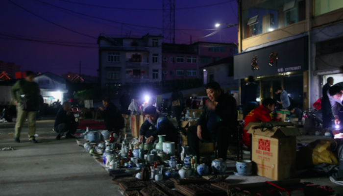 凌晨4点,景德镇,曙光路陶瓷·古玩城。鬼市在昏暗的灯光和闪亮的手电筒照射下开始人头攒动。他们是各地慕名而来的收藏家、骨灰级陶瓷爱好者、揣着发财梦的倒爷们,还有普通的古玩爱好者。在鬼市里,发生着太多故事,也流传着太多传说。