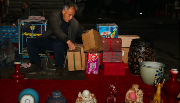 这位老摊主开始把前天晚上精心包好的宝贝,一一拆分出来,开始摆摊接客。相对于其他4点钟就开始摆摊的人来说,他已经算来得很晚了。