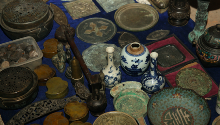 为了更好地辨别瓷器是否造假、釉面是否完整,这位淘客已经用超亮手电筒蹲了不下十分钟了。