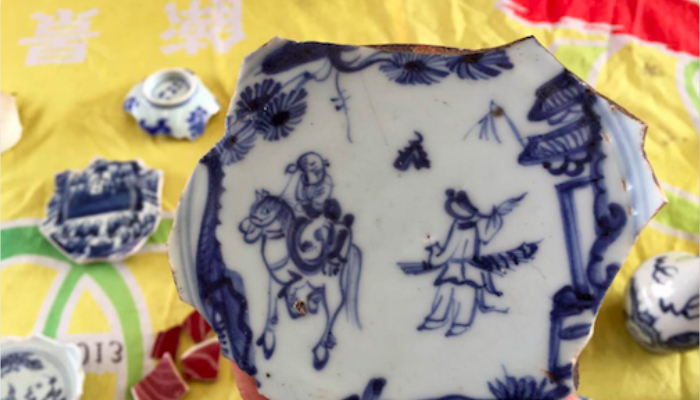 瓷片一般以人物为贵,因为人物量少,加上难画,所以相对于其他种类来说更贵,例如这片瓷片摊主售价800元。