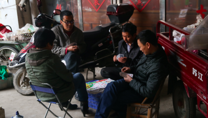8:12,因为鬼市的人气没有往年高了,这个时候也有人开始现场组局打牌了。这个时候的人流量慢慢少了,很多本地的淘客都赶着去上班,而从外地来的,四五点钟就来逛,这个时候也大多淘了宝贝离去。