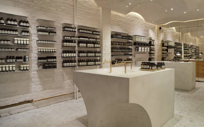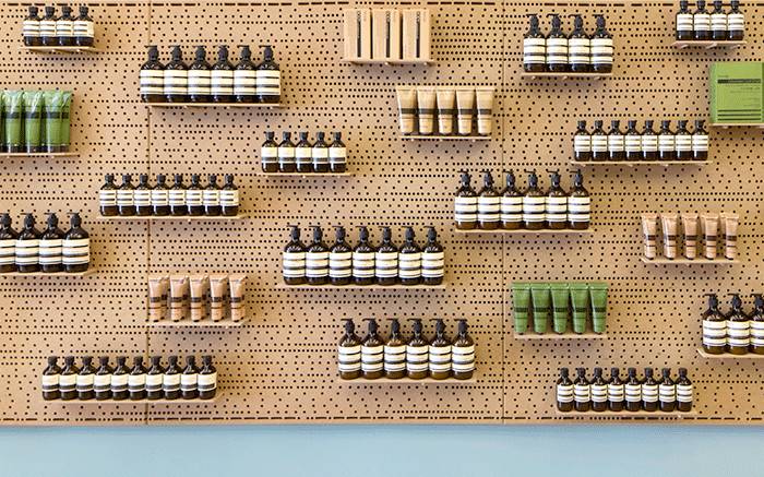 Aesop看似无包装的药瓶外形,只简单地印上产品名、成分、使用方法的设计实颇具巧思。茶色玻璃可隔离紫外线、减少水分流失、防止变质,Aesop也鼓励客户循环添加再用。专卖店采用高科技现代装修,产品均放在冷藏柜内保存,开封后有效期为三个月。