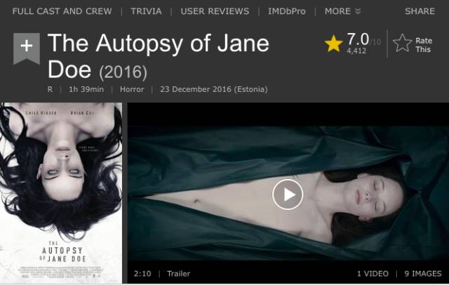 这部电影的真正恐怖在于,从始至终,无名女尸都静静地躺在冰冷的解剖台,没有任何表情的主导着一切,让人类自己毁灭于自己手中。