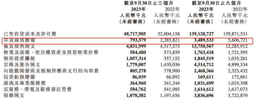 2023年Q3,存货减值减值拨备几乎是上年同期的三分之一,堪称是此次毛利率改善的一大功臣,存货减值拨备究竟是什么呢?