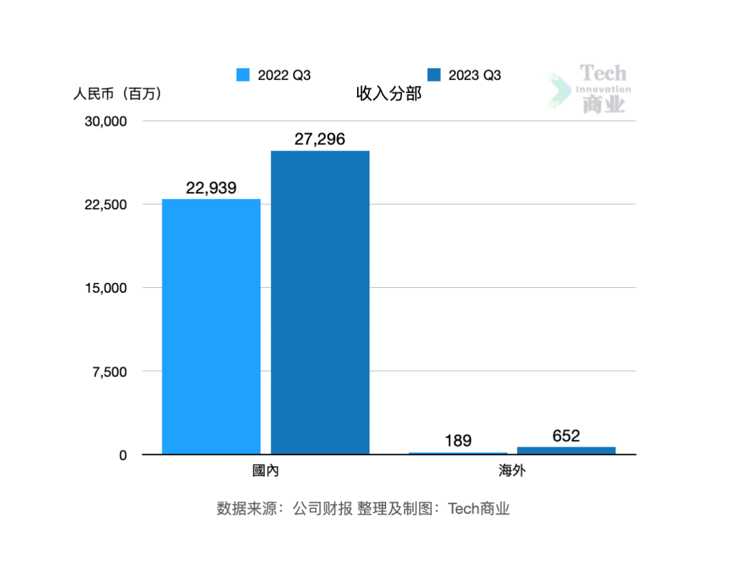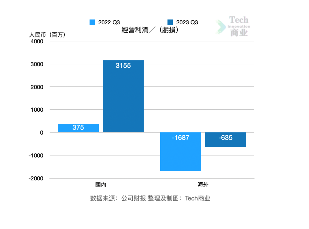 其中本季度国内业务经营利润为31.6亿元,上一财年同期为利润3.8亿元,本季度该项经营利润增幅显著。本季度海外业务经营亏损额为6.4亿元,上一财年同期亏损16.9亿元,本季度该项亏损收窄62%。