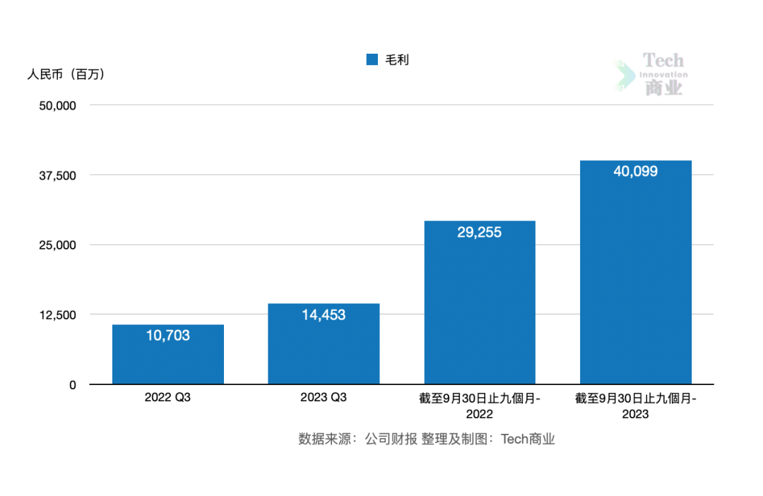 根据季报,快手公司本财年Q3毛利额为145亿元,相较上一财年同期的107亿元,本季度毛利增幅为35%。本财年截至本季度的三个季度,该公司毛利为401亿元,相较上一财年同期的293亿元,该期毛利增幅为37%。