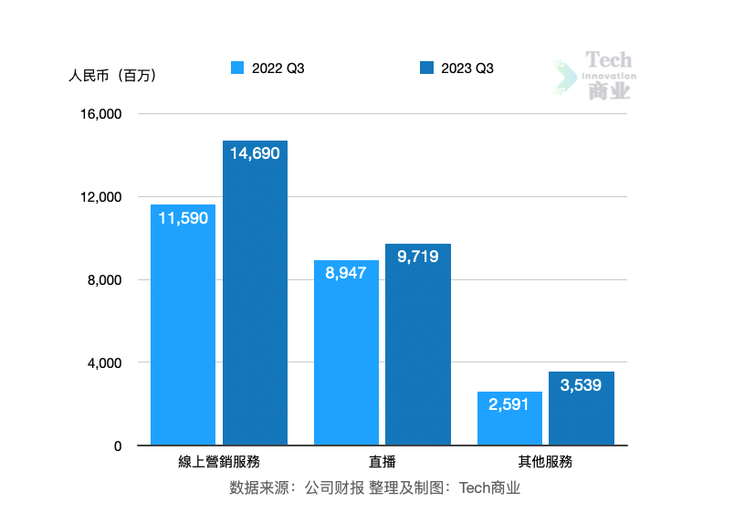 本财年Q3来自直播的收入为97亿元,同比上一财年同期的89亿元,本季度增长9%。该业务增长得益于其内容供给的丰富及优化的直播生态系统。