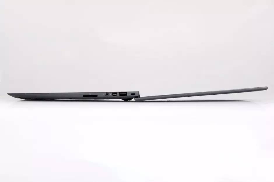 外观方面,这款笔电主打薄,厚度只有10.4毫米,什么概念,和7号电池一样薄。外壳顶部使用了阳极氧化铝材质,底部使用了碳纤维材质,科技感十足,在一贯朴实、低调的基础上添加了贵族气质。