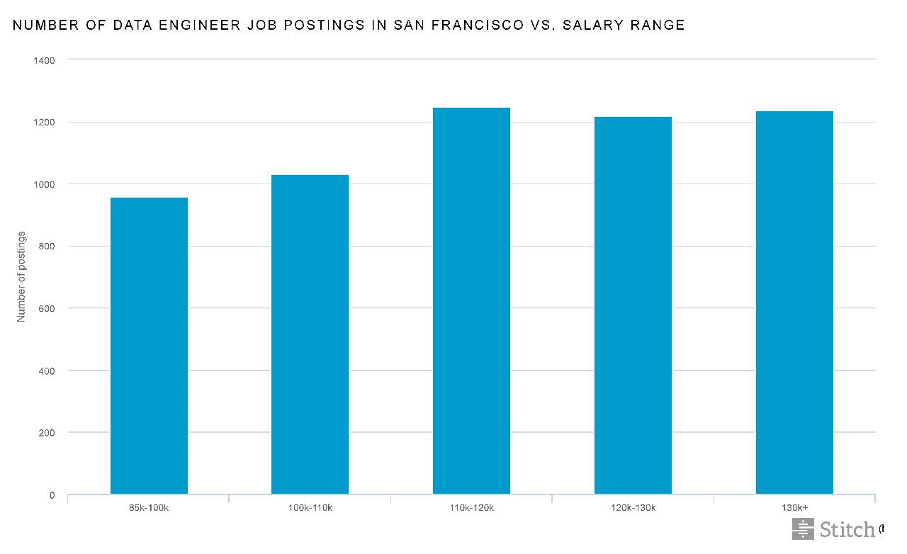 【图表: 旧金山地区数据工程师的数量和薪酬比】