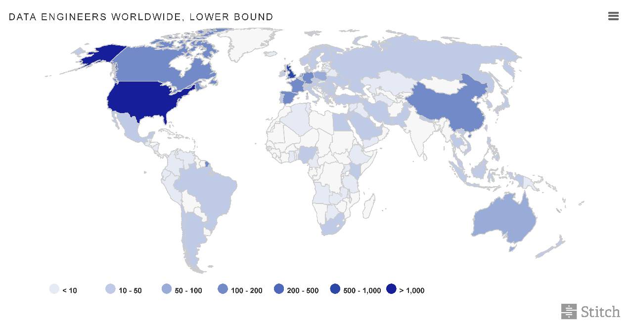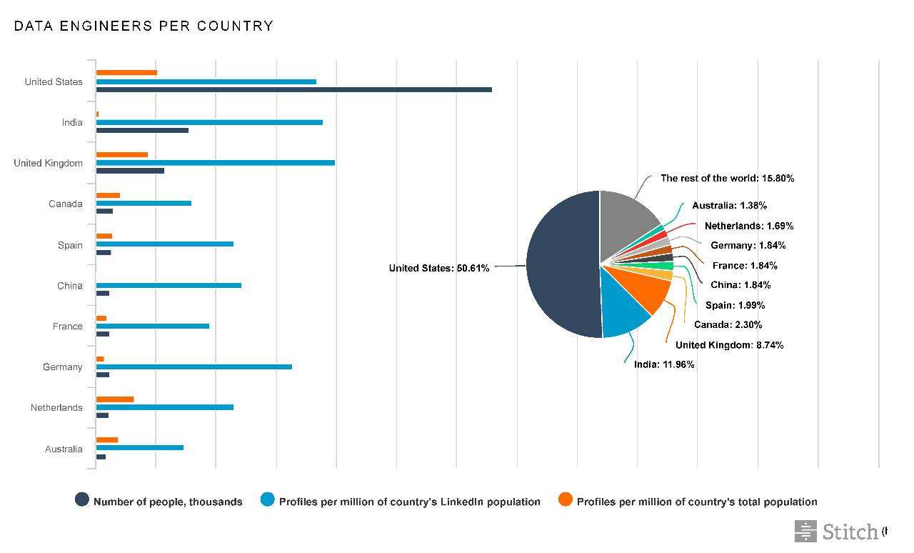 50% 的数据工程师都在美国。