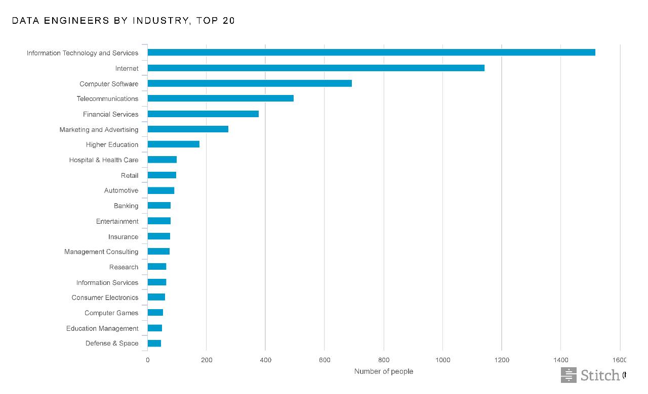 当我们考察数据工程师的工作领域时,我们发现一系列的行业都需要数据人才。