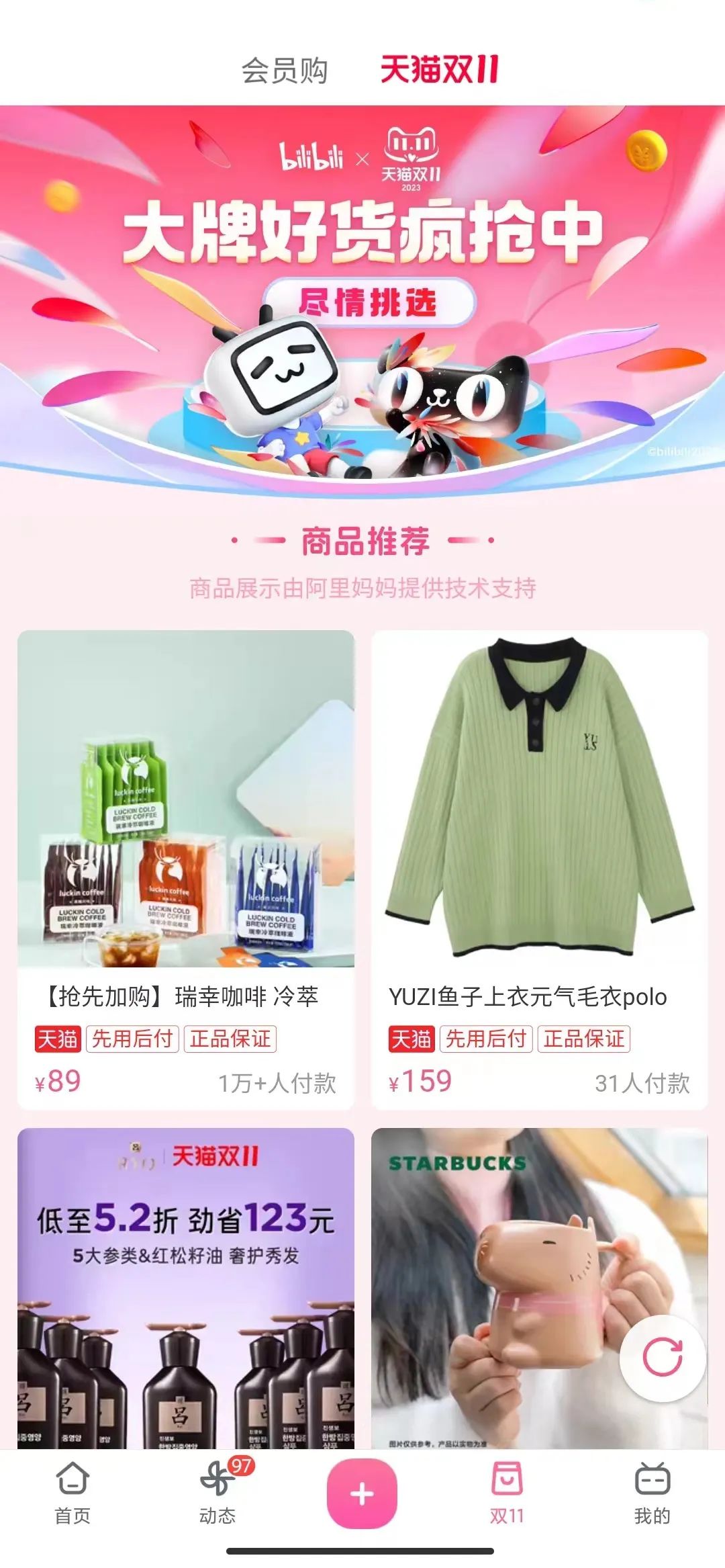 B站发力电商的决心确实愈加坚决。在商业化基建层面,今年双11,B站大力扩展商业化场景,将手机APP底端的原“会员购”入口暂时更名为“双11”,并新增“天猫双11”版块,直接展示天猫商品,支持点击跳转天猫页面购买。
