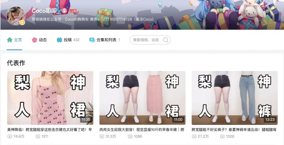 以Coco为例,作为穿搭博主,Coco精准定位到梨形身材的女性用户,针对梨形女性“修饰胯宽、腿粗”等诉求打造内容,借此与用户建立起情感联系。“对于B站UP主而言,垂类、专业的内容分享就像是打造UP主的‘内核’,唯此,才能够提升UP主与粉丝之间的黏性。”