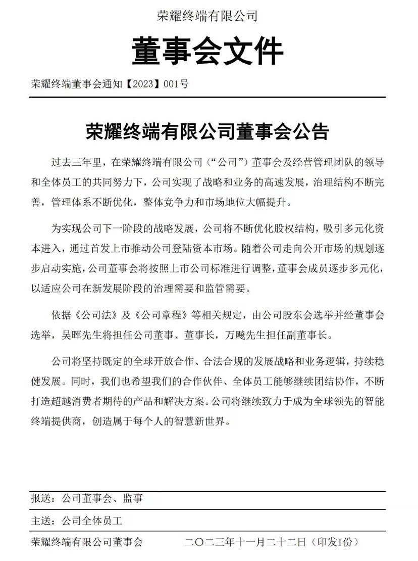 而根据网传的荣耀终端内部文件,荣耀终端拟通过首发上市推动公司登陆资本市场。