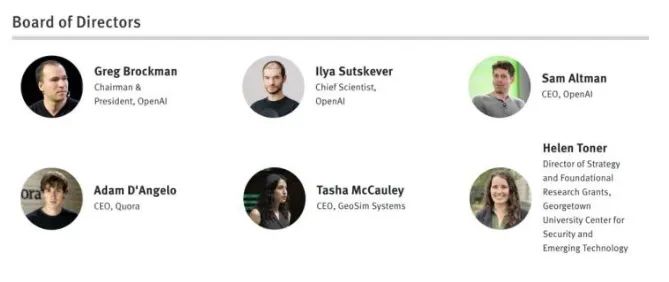 这次变局之前,OpenAI的董事会由六名成员组成。格雷格和山姆退出后,现由OpenAI首席科学家伊利亚.萨克斯维尔、Quora首席执行官亚当.德安吉洛(Adam D'Angelo)、技术企业家塔莎.麦考利(Tasha McCauley),以及乔治城安全与新兴技术中心的海伦.托纳(Helen Toner)组成。