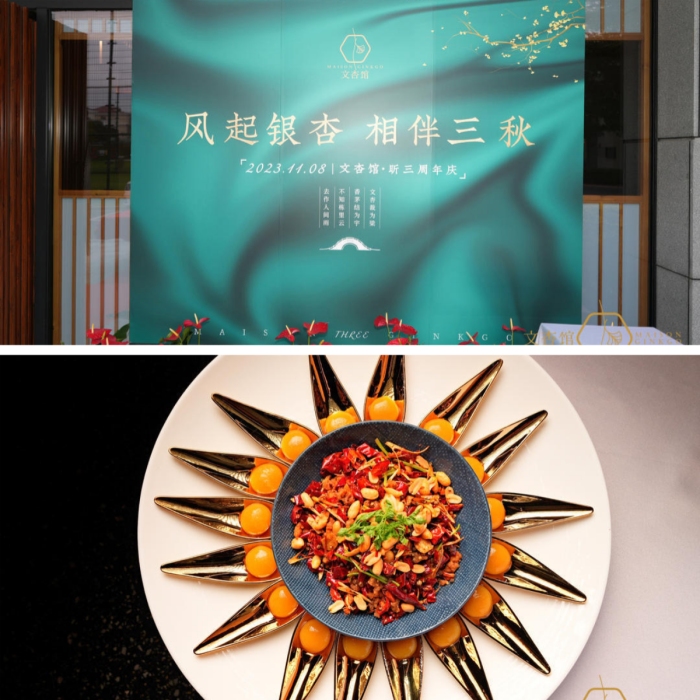 “文杏馆·昕”2020年在虹桥基金小镇开业,于今年迎来三周年。“文杏馆·昕”开业以来实现了西式管家服务,厨师团队也不断对菜品进行升级,确保每道菜品的口感和品质达到最高标准。【潮式脆皮肥肠】先卤后炸,每一寸油润都裹上咸鲜的卤汁,炸之后外衣酥脆肚里却还是肥糯依旧。【潮州老菜脯焗东海大黄鱼】以生焗之法使黄鱼的本身鲜味,陈年老菜脯的特别韵味缠绕在了一起,变换中见层次。【川味口水脆鳝】将鳝鱼去骨焯水,浸入滚油复炸三次,表面包裹一层私房秘制酱汁,外皮的特别辣味包裹内里脆生细嫩的肉感,口感丰富。【意境水墨山药】将铁杆山药蒸熟打成泥,用墨鱼汁勾起勤出云紋,入口细腻丝滑,留下一抹爽意清新。