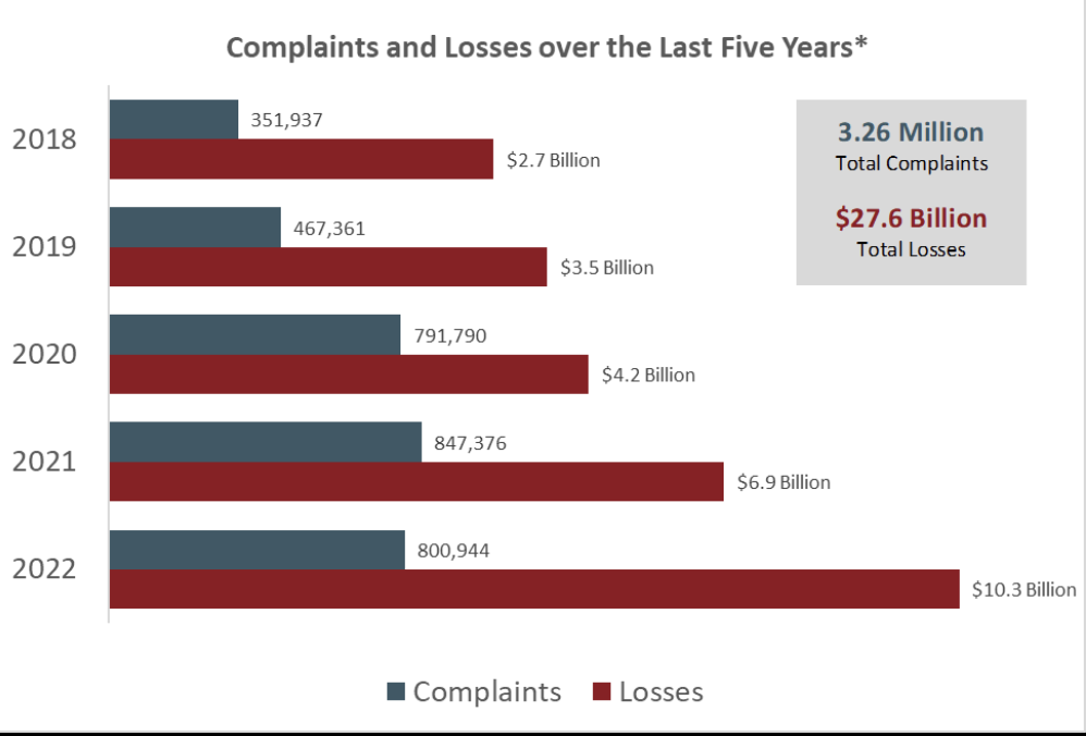 △ 美国公民遭受电诈损失逐年增长。(图源:美国联邦调查局报告)