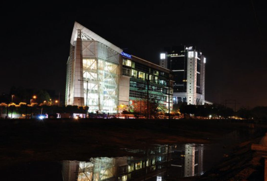 △ 位于印度德里附近的古尔冈,一座灯火通明的呼叫中心。(图源:社交媒体)