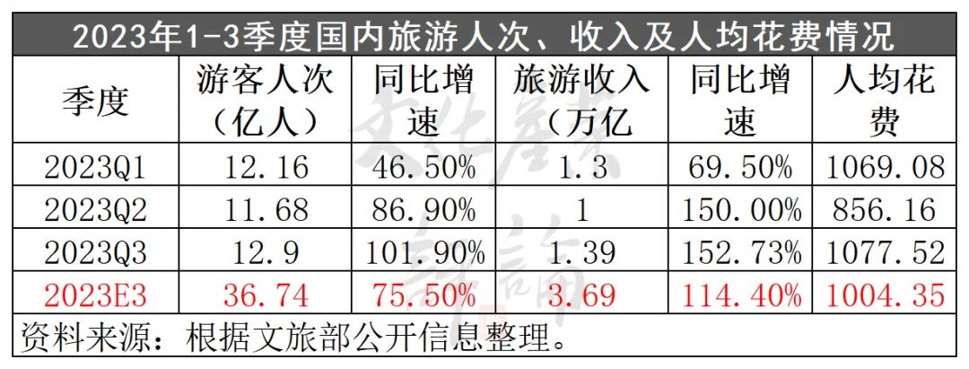 迈入2023年以来,国内旅游市场呈现全面复苏的良好态势。据文旅部发布的数据显示,2023年前三季度,国内旅游总人次36.74亿、出游总花费3.69万亿元,同比分别增长75.5%和114.4%。