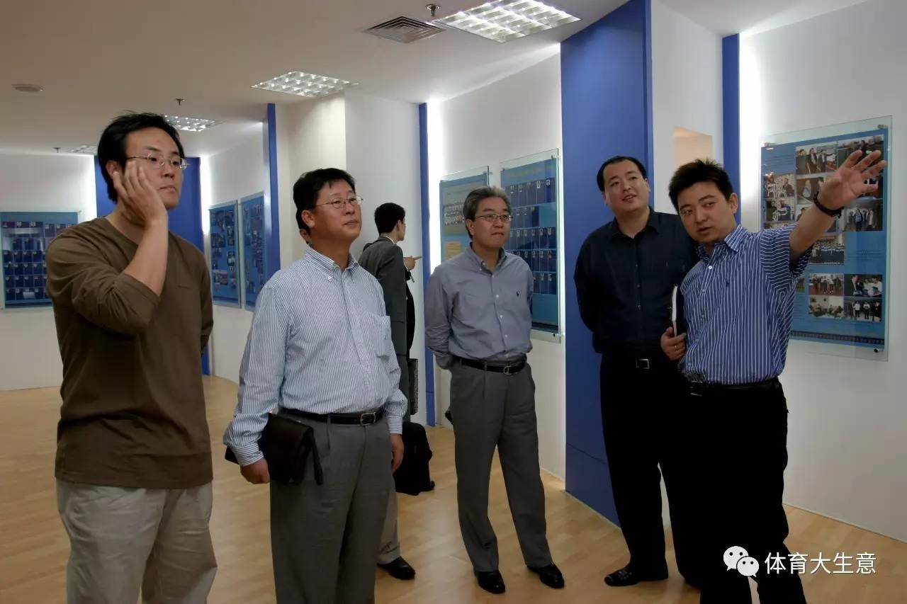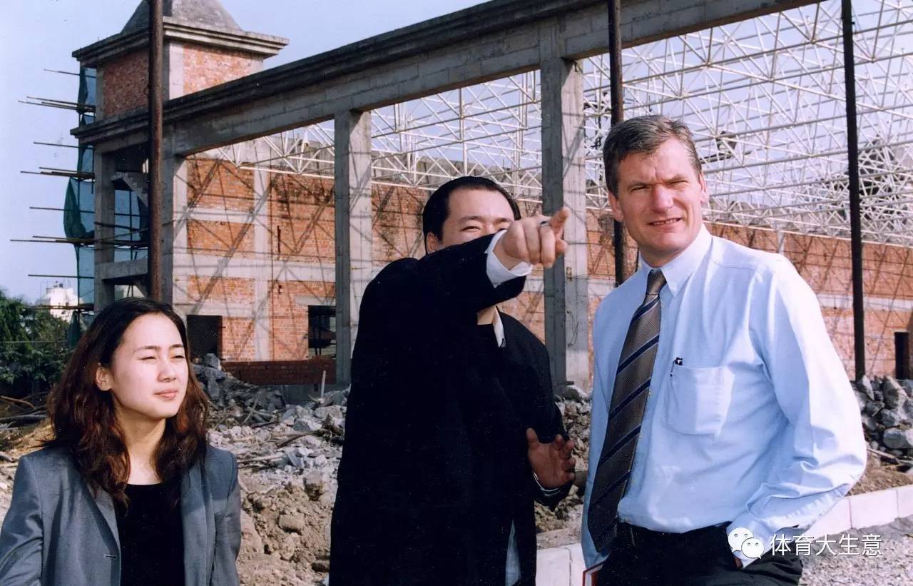 ▼2003年,A3联赛上海会议,朱晓东(右)和姚振彦带日韩秘书长参观俱乐部