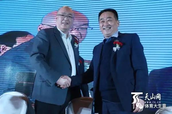 ▼姚振彦与新疆天山雪豹足球俱乐部董事长孙爱军签约