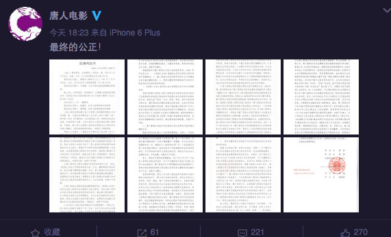 此前蒋劲夫工作室回应一审判决“将依法提起上诉,相信会等到最终的公正。”如今唐人电影发微博称这是“最终的公正”。