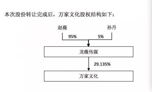 龙薇传媒背后最大的股东是著名影星赵薇,持股95%,这也意味着赵薇斥资30.59亿元取代万家文化原实际控制人孔德永,将成为公司第一大股东。