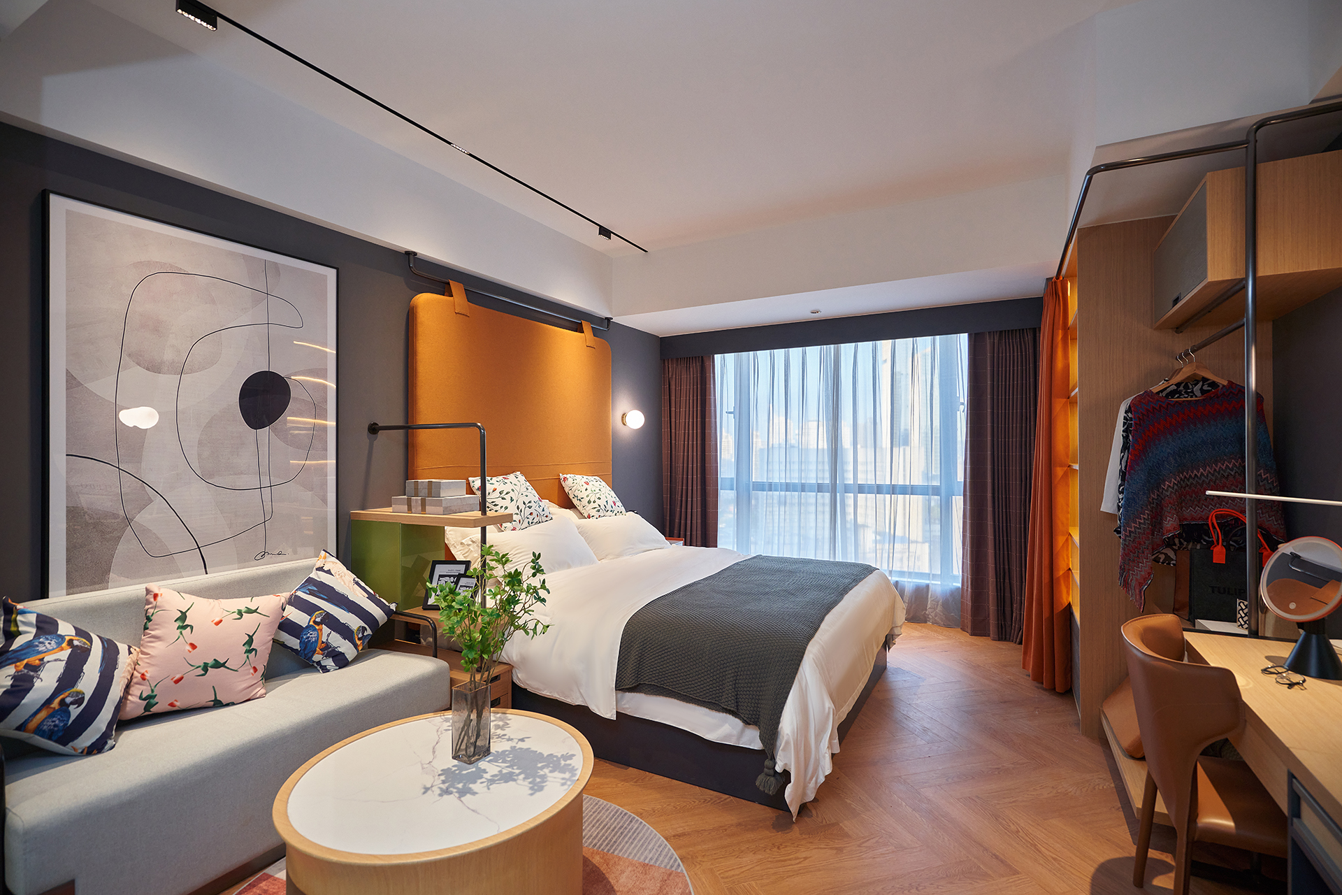 得益于城市经济与周边配套赋能,憬黎公寓酒店武汉国际广场店将外部资源与内在产品力呼应,积极契合消费需求,迈向城市发展前沿。通过与本土文化、城市印象有机结合, 融入餐饮住宿、新零售、社交新场景等元素,构建富有创新活力的公寓空间,满足全天候一体化的生活、服务及社交需求,探索武汉居住的精神内核与理想形态。