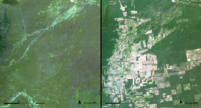 阿根廷在1972年和2009年,可以看出大量的森林被砍伐。