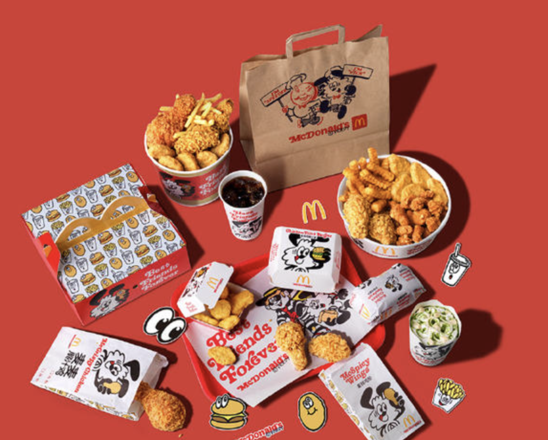 今日,麦当劳正式推出与VERDY的联名新活动,本次活动以“BFF”为主题,多款产品换上“熊猫兔”VICK新包装,炸鸡小食享受第二份半价活动,同时还推出T恤、帽子、卫衣、托特包等一系列联名周边,并在北京、上海、广州佛山、深圳四地举办潮流文化艺术展。(品牌官方)