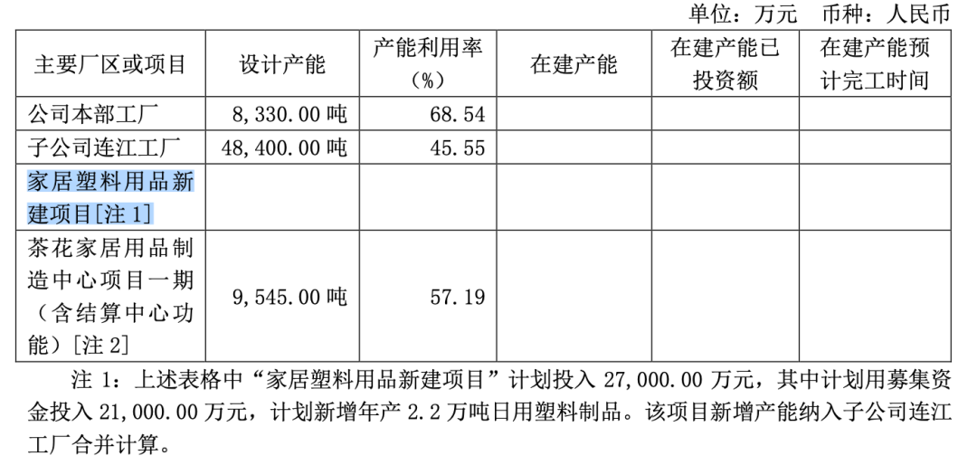 茶花股份在《招股书》中表示,本次募集资金投资项目新建年产3万吨日用塑料制品项目的建设期为2年,婴童用品项目建设期为2年,研发中心项目建设期为1年。