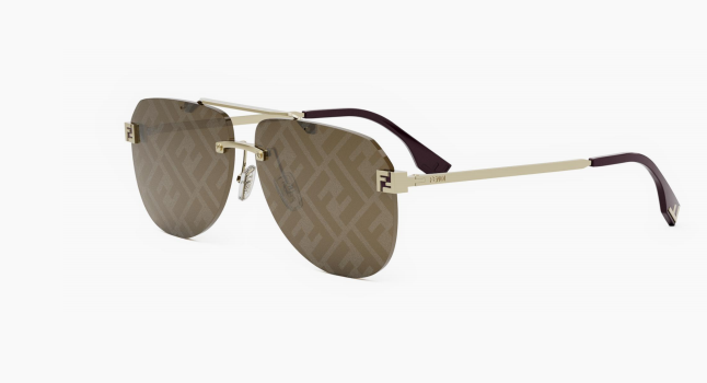 FENDI男士系列着重表达对品牌工匠的致敬,FENDI SKY系列创新无框飞行员造型和大胆的面具设计,在正面印有标志性的“FF”徽标,在尾端设计了倒“F”细节。