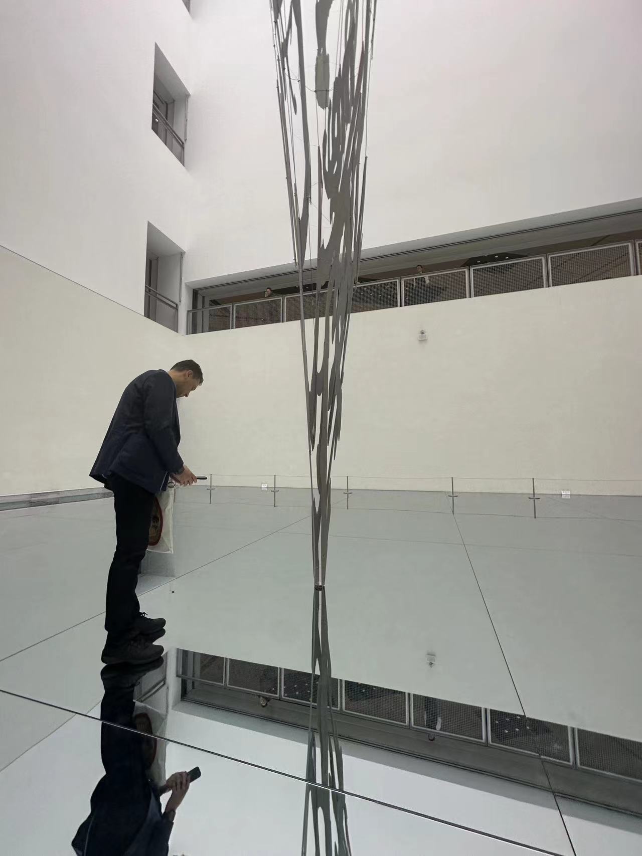 11月23日,中国学研究者们受邀展开了一场深入上海城市肌理的实地参访之旅。吉来围绕着徐冰的装置艺术品不停走动、拍照,以不同视角感受文字因引力涌入中央、向下无限陷落的飘零之感。
