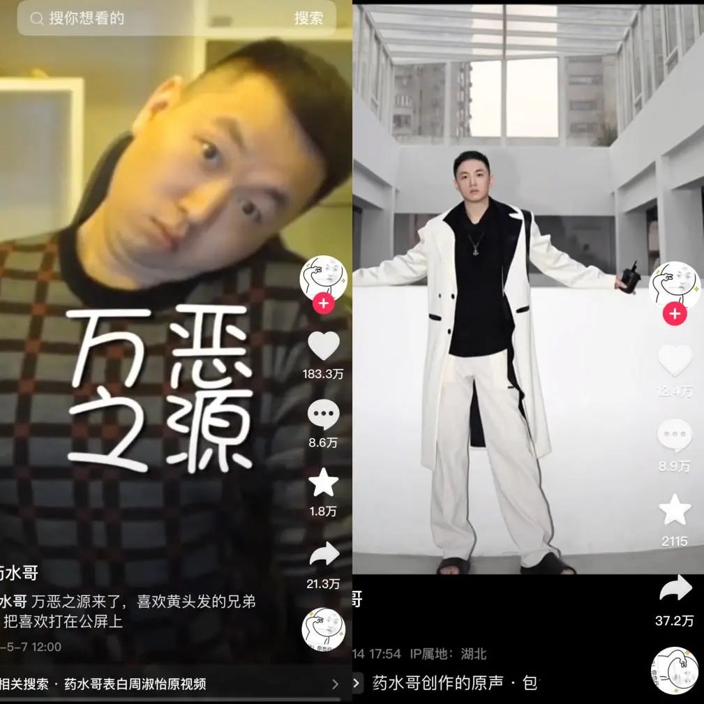 再看药水哥,过去在直播间以怪诞的表情和夸张的肢体动作,为网友们贡献了无数沙雕、鬼畜表情包的屌丝哥,在消失4个月之后华丽变身,一组神似李现、黄景瑜的写真,直接惊呆了吃瓜网友,评论区很多人留言“自己的失败固然可怕,但药水哥你的成功更让我揪心”、“刘波你现在变的让我觉得陌生”。写真之外,药水哥也一改从前的沙雕形象,分享起了健身日常,前后反差之大,也难怪网友们要@自己的男朋友来学习了。