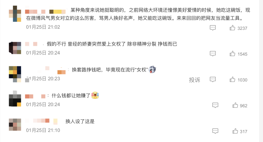 虽然转型的确是网红们延长互联网事业的必修课,尤其对于争议性的网红而言,很大程度上决定了能否继续靠流量吃饭,毕竟如今网络顶流们被遗忘的速度几乎是以周为单位。但能否转型成功、且不会被新人设反噬,并不是一件容易的事情。